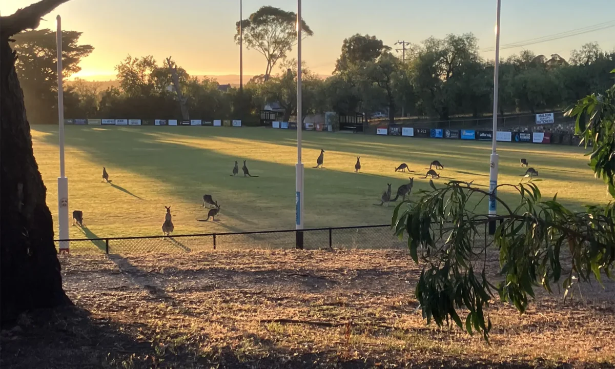 Photo: Marie Bell. Kangaroos making the most of the early morning cool at Bill Woodfull Oval on Sunday around 7am.