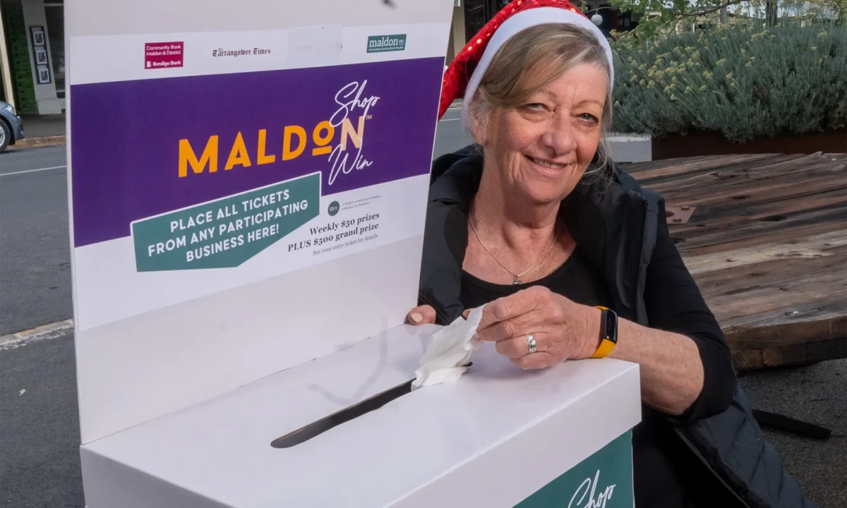 Every time you spend $30 at a participating business, you’’ll receive an entry form to deposit in a box like the one shown with Catherine from Maldon Inc. As if there weren’t already numerous great reasons to do your shopping in Maldon during the festive season, the local traders association — Maldon Inc — is…